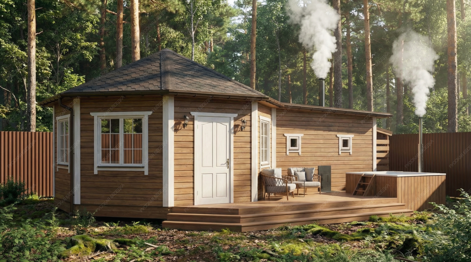Огнебиозащита (бесцветная) или декоративный деревозащитный состав "Здоровый дом" (цвет на выбор) – нижняя обвязка, лаги, пол и цокольная доска.
