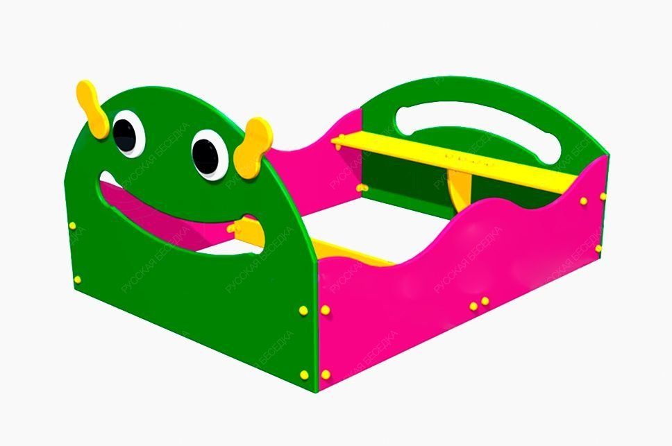 Детская песочница «Гусеничка» послужит веселым украшением вашей территории. На ее сидении можно и отдыхать, и лепить куличики. А высокие борта песочницы защищают ребенка от порывов ветра.