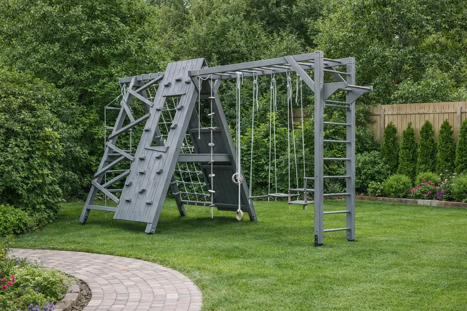 Деревянные детские спортивные комплексы — это пространство, где рождается сила, ловкость и уверенность в себе. Натуральное дерево, экологичное и тактильно тёплое, создаёт особую атмосферу уюта и безопасности, принципиально отличаясь от холодного металла. Это не просто снаряды, а настоящий островок приключений, который растёт и меняется вместе с ребёнком. Каждый комплекс представляет собой модульную систему, где базовую конструкцию дополняют разнообразные элементы. Гладкая горка для весёлого скольжения, мини-скалодром для развития координации, классические качели, рисующие в воздухе плавные дуги, и надёжный турник для формирования правильной осанки. Верёвочные лестницы и канаты учат балансу и работе с собственным весом, а баскетбольное кольцо оттачивает точность броска. Секция с лестницей может быть расположена под любым углом, создавая уникальную траекторию для лазания. Такая вариативность позволяет создавать сооружение под конкретные задачи и доступное пространство. Все комплектующие можно комбинировать и заменять, адаптируя игровую зону под взросление ребёнка и появление новых интересов. Конструкции отличаются безупречным качеством обработки: отшлифованная древесина, исключающая занозы, прочные соединения и устойчивость к нагрузкам. Это капитальное вложение в физическое развитие, где каждая деталь продумана для активных игр и безопасного штурма вершин.