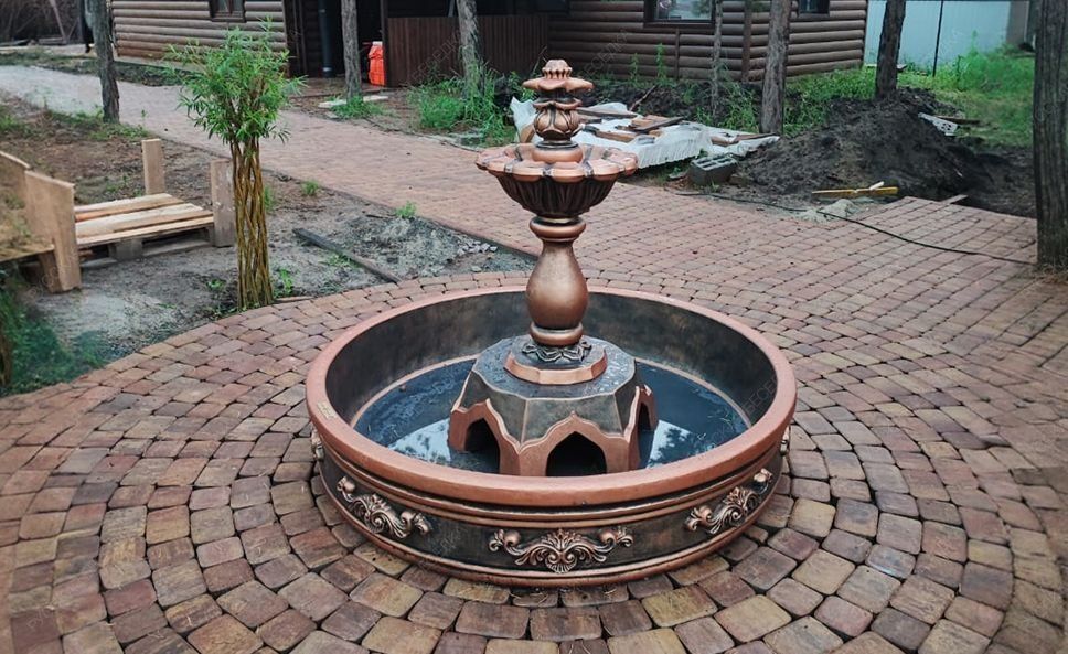 Садовый фонтан из бетона Венеция станет отличным украшением вашего участка. Этот фонтан подходит для участков среднего и большого размера. Данный садовый фонтан из бетона состоит из 3-х разборных элементов – цельная чаша, подставка (краб), сердечник. Размеры чаши позволяют органично вписать фонтан практически в любой двор с классическим стилем. Компактные размеры делают модель отличным выбором для небольшой загородной дачи, украшения сада перед одно- или двухэтажным домом, декорирования небольшого сквера. Еще его часто выбирают владельцы кафе или ресторанов. Фонтан для дачи из бетона является прекрасным дополнением к любому участку. Он придаст особый изыск вашему саду или огороду, создавая атмосферу уюта и комфорта. Конструкция фонтана из бетона обеспечивает ему надежность и долговечность. Бетон – материал, который не подвержен коррозии, не гниет и не горит. К тому же, бетон можно легко формовать, что позволяет создать уникальный дизайн фонтана. Одним из главных преимуществ фонтана из бетона является его доступная цена. Такой фонтан стоит значительно дешевле, чем аналоги из металла или камня, при этом он не уступает им в качестве и эстетическом виде. Фонтаны для дачи из бетона могут быть разных размеров и форм. Вы можете выбрать фонтан, который подойдет именно для вашего участка. Более того, вы можете выбрать дизайн, который соответствует вашему стилю и предпочтениям. Если вы хотите придать своему участку изюминку и создать уютную атмосферу, то фонтан из бетона – отличный выбор. Он не только станет центром внимания, но и принесет комфорт и удовольствие вам и вашим гостям. Если вы задумываетесь о покупке фонтана для дачи, обратите внимание на фонтаны из бетона – это отличный выбор! Продуманная эстетика и тщательная детализация Фонтан, как и другая продукция нашего бренда, уникален, он разработан художниками компании. Модель привлекает внимание оригинальным орнаментом на чаше, красивым сердечником. Выполняя работу, мы знаем, что мелочей не бывает. Специалисты тщательно шлифуют и выравнивают большие поверхности, прорабатывают мелкие элементы, убирают неровности и другие дефекты.  Надежные материалы и качественное изготовление Для увеличения срока службы изделия в смесь добавляют пластификаторы и модификаторы. Чтобы сделать крупные изделия (статуи, бассейн и т. п.) прочными, мы проводим их армирование. Во время сушки тщательно соблюдается температурный режим и другие нормативы, что гарантирует качество изделия. После того как архитектурные объекты готовы, мы шлифуем поверхность и наносим грунтовку. Это необходимо, чтобы фигуры и лепнина выглядели аккуратно, а окрашивание сохранялось на много лет. Затем наносят фасадную краску и финишное гидрофобное покрытие. Использование данной технологии позволяет создать стойкий цвет, который не выгорает и не боится других воздействий. Фонтаны выглядят реалистично, тон распределен равномерно, а срок службы покрытия составляет более 5 лет.                                Фонтан может быть покрыт белой краской, выполнен в бронзе или золоте, используемая краска создает надежное защитное покрытие, при необходимости ее легко реставрировать. У данной модели фонтана цельный бетонный бассейн круглой формы, размеры оптимальны для перевозки. За счет отсутствия швов такая чаша просл