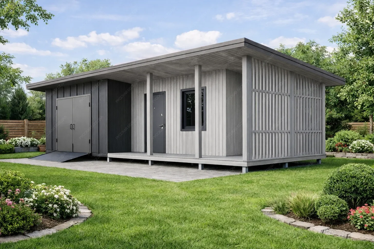 Дополнительно приобретается: 1. Свайный — винтовые сваи 89×2500 или 108×2500 (стальная труба, залитая бетоном, оголовок) 2. Ленточный — фундаментная лента мелкого заглубления 3. Монолитная плита – монолитная бетонная плита