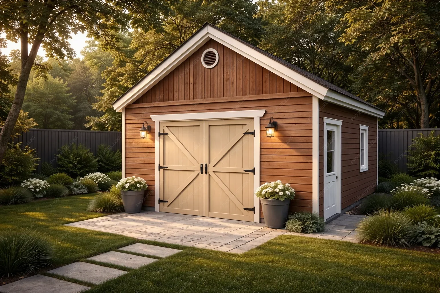 Деревянный гараж — это не только удобное и функциональное сооружение, но и отличная возможность дополнить архитектурный стиль вашего участка. Деревянные конструкции остаются вечной классикой, так как дерево — экологически чистый и натуральный материал. Одним из основных преимуществ деревянных гаражей является их доступная цена, что делает их более выгодным вариантом по сравнению с постройками из других материалов. При правильном строительстве деревянный гараж может служить десятилетиями, сохраняя все свои свойства и привлекательный внешний вид. Мы заботимся о качестве наших конструкций, обрабатывая древесину надёжными пропитками, которые защищают от гниения и плесени. Огнебиозащитные средства обеспечивают устойчивость к влаге, ультрафиолетовому излучению, перепадам температуры и другим атмосферным воздействиям. Кроме того, мы можем предложить утепление гаража, учитывая важность пароизоляции для сохранения тепла и защиты конструкции. Индивидуальное проектирование позволит вам точно вписать гараж в экстерьер вашего участка и оптимально спланировать внутреннее пространство для удобства использования. Создайте идеальное место для хранения вашего автомобиля и оборудования с нашим деревянным гаражом!