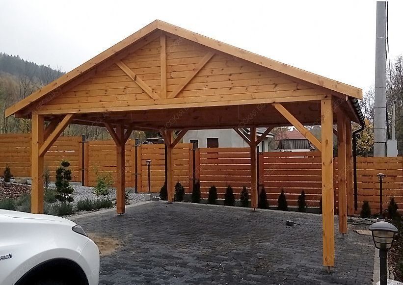 Навес из дерева послужит отличным парковочным местом для одного или нескольких автомобилей.