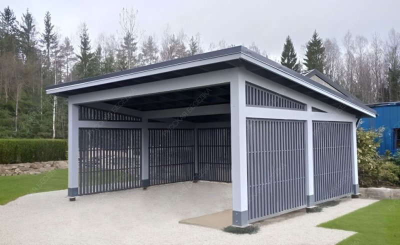Навес из дерева послужит отличным парковочным местом для одного или нескольких автомобилей.