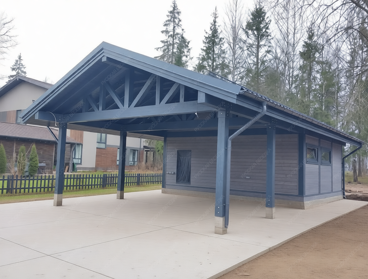 Навес из дерева послужит отличным парковочным местом для одного или нескольких автомобилей.