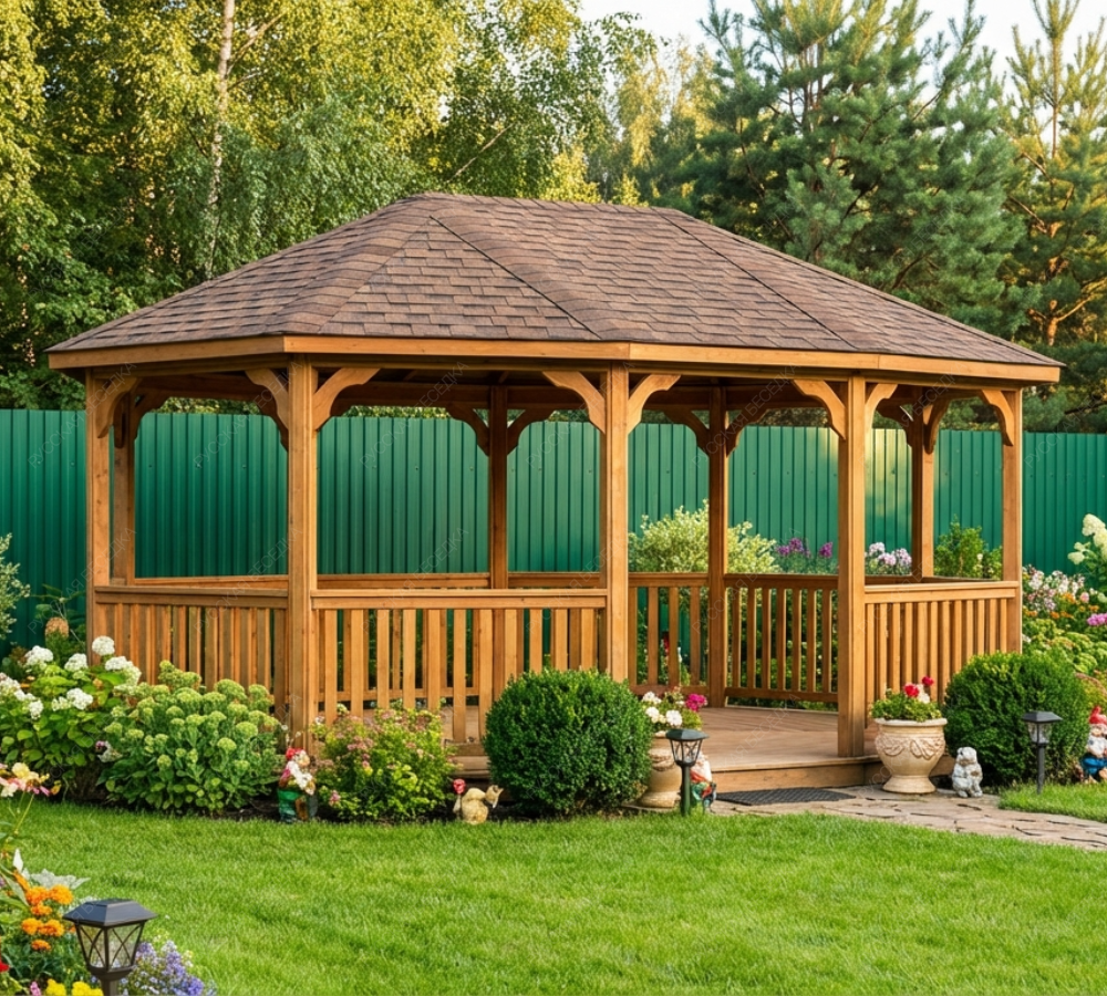Беседка выполненная из лучших пород древесины, прослужит долгие годы и не потребует особого ухода и обслуживания. Специальные лакокрасочные материалы которые мы используем, предотвратят старение, гниение и заражение грибком конструкции кухни. Используемая огнебиозащита образует полупрозрачное полуматовое покрытие, стойкое к влаге, УФ-излучению, перепадам температуры и другим атмосферным воздействиям.