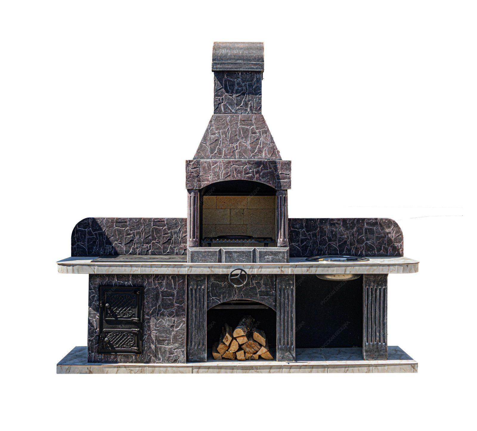 Барбекю-комплекс сделан из армированного огнеупорного бетона с добавлением керамзита.
