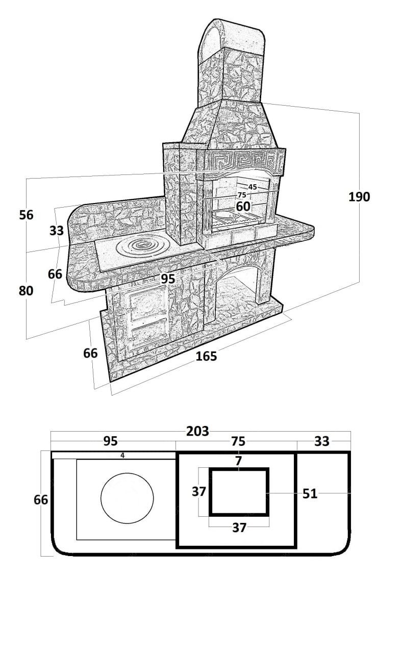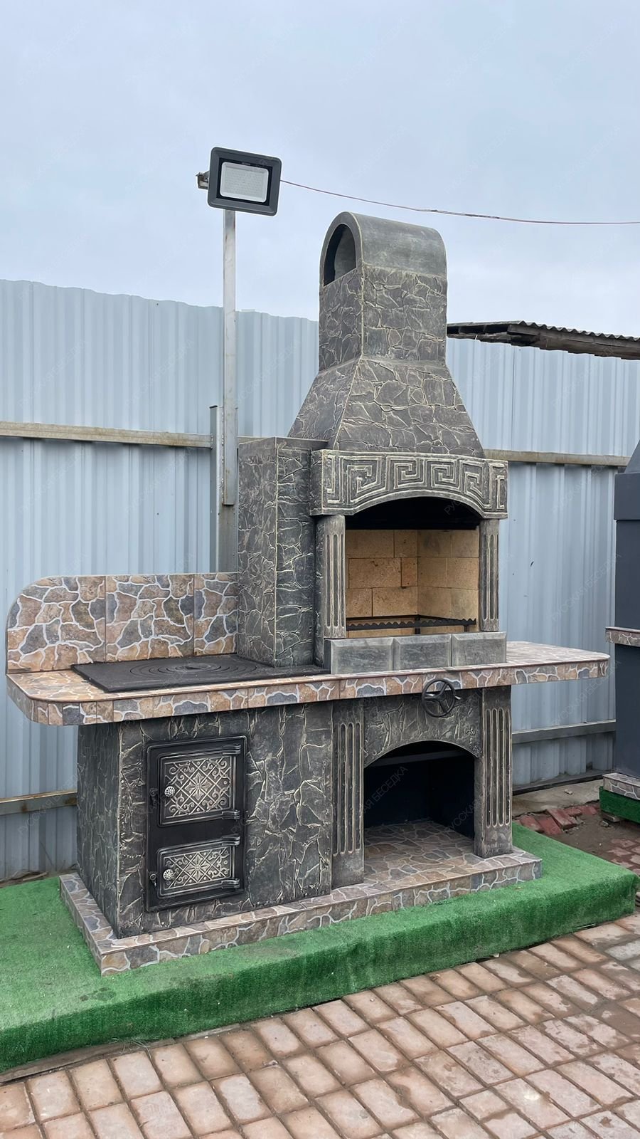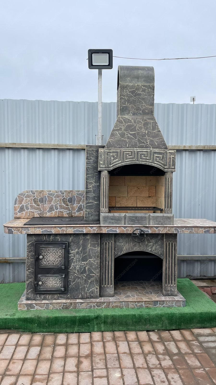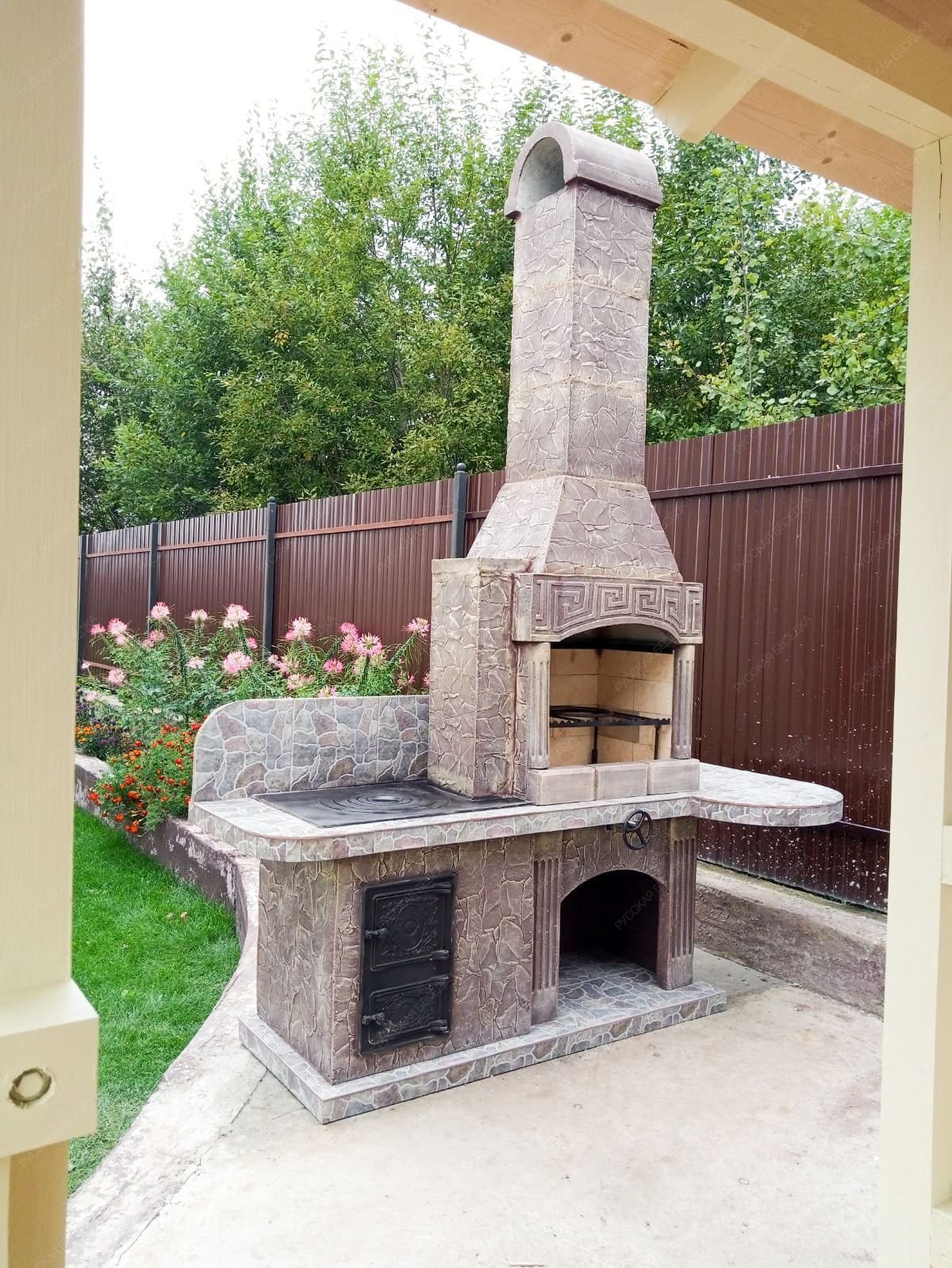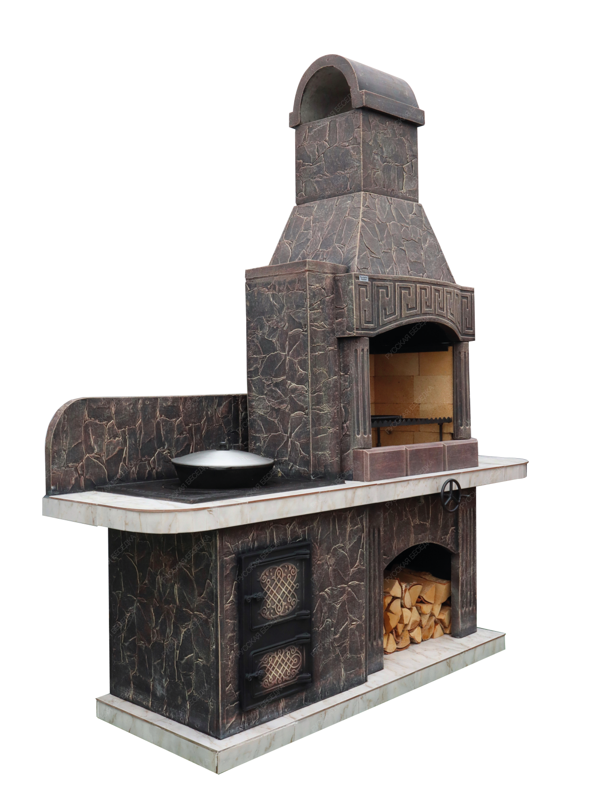 Барбекю-комплекс сделан из армированного огнеупорного бетона с добавлением керамзита.