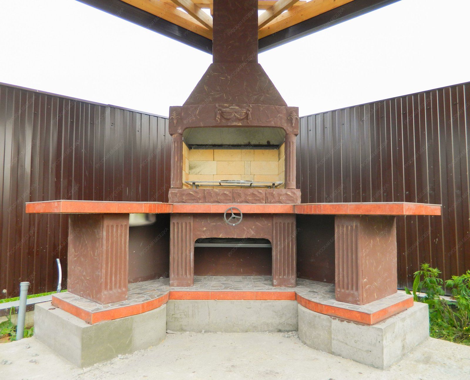 Барбекю-комплекс сделан из армированного огнеупорного бетона с добавлением керамзита.