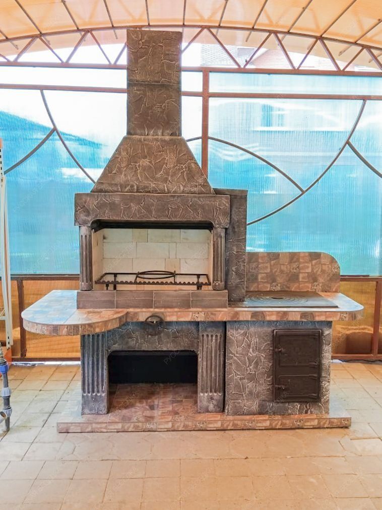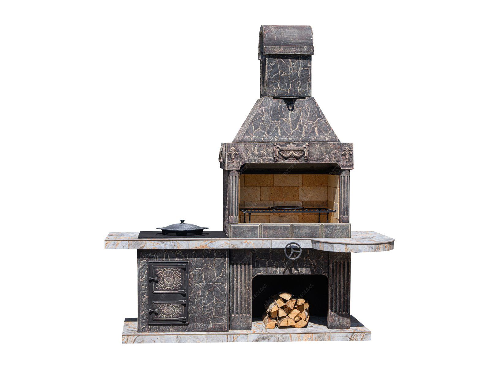 Барбекю-комплекс сделан из армированного огнеупорного бетона с добавлением керамзита.
