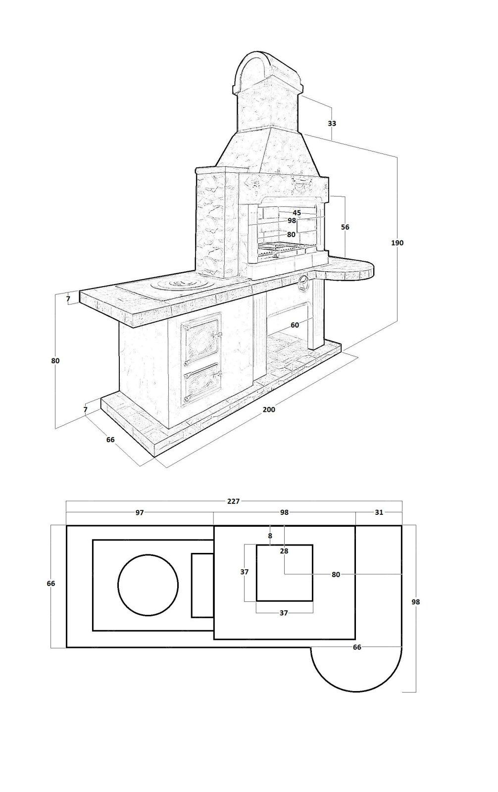 Печь № 20 — Печь барбекю с печью под казан (Большая топка)