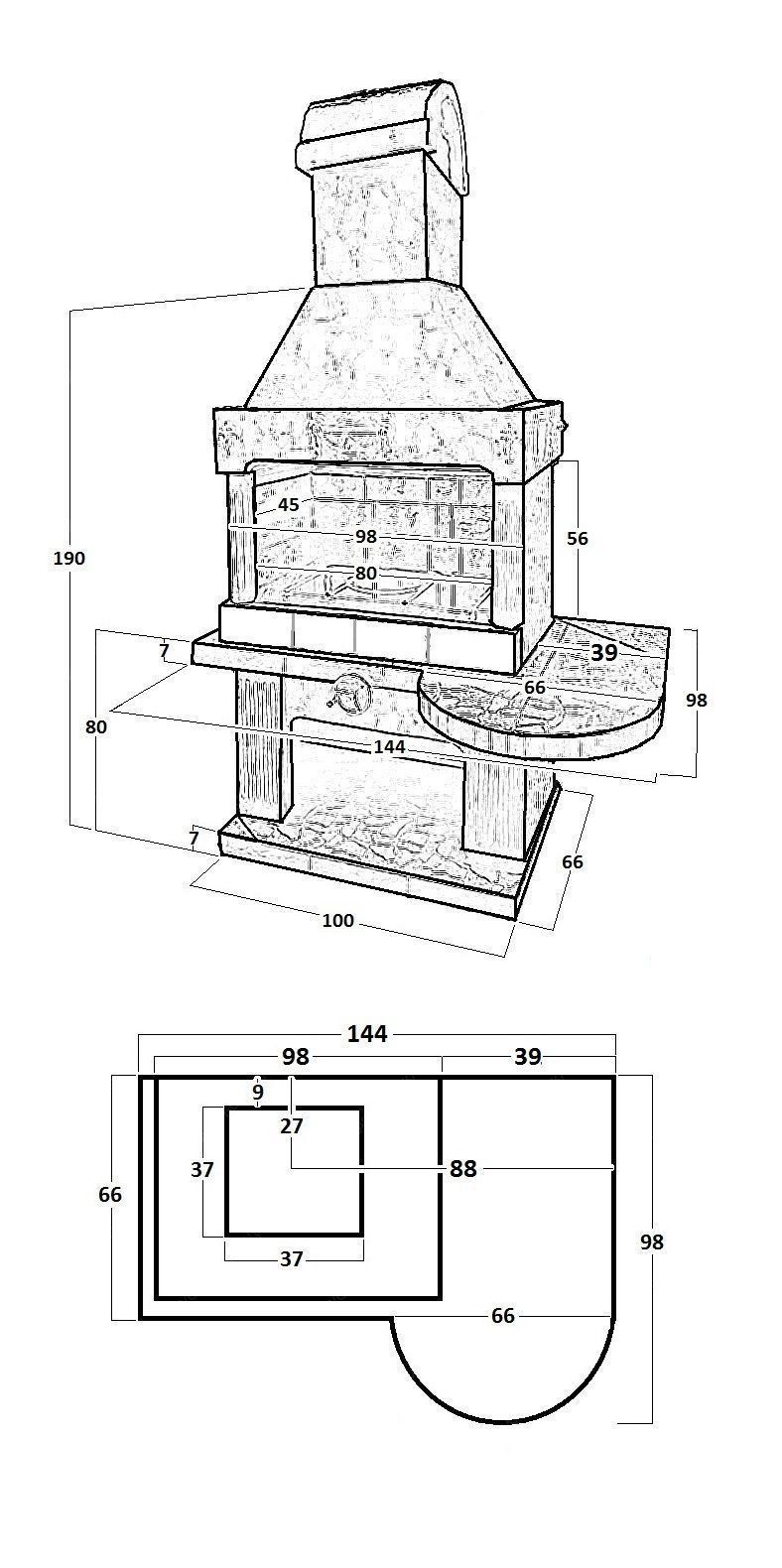 Этот комплекс барбекю от производителя для дачи имеет стандартные составляющие: