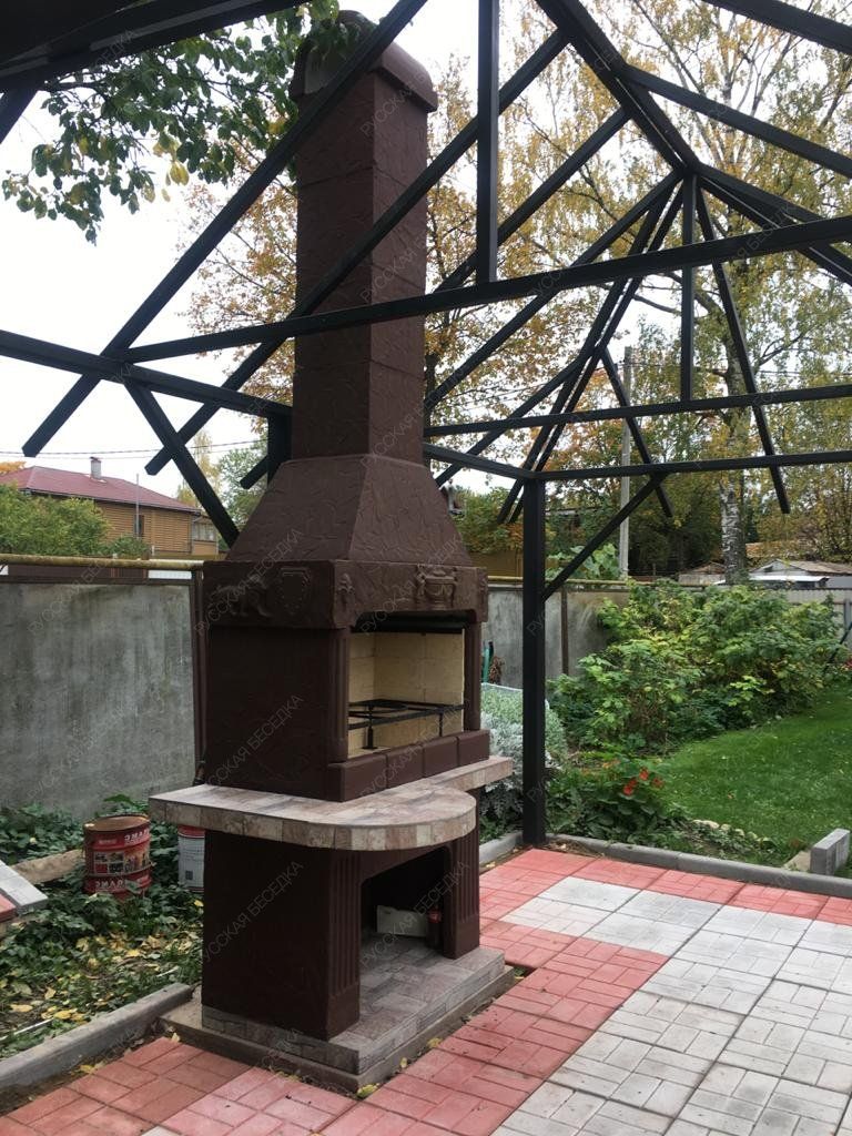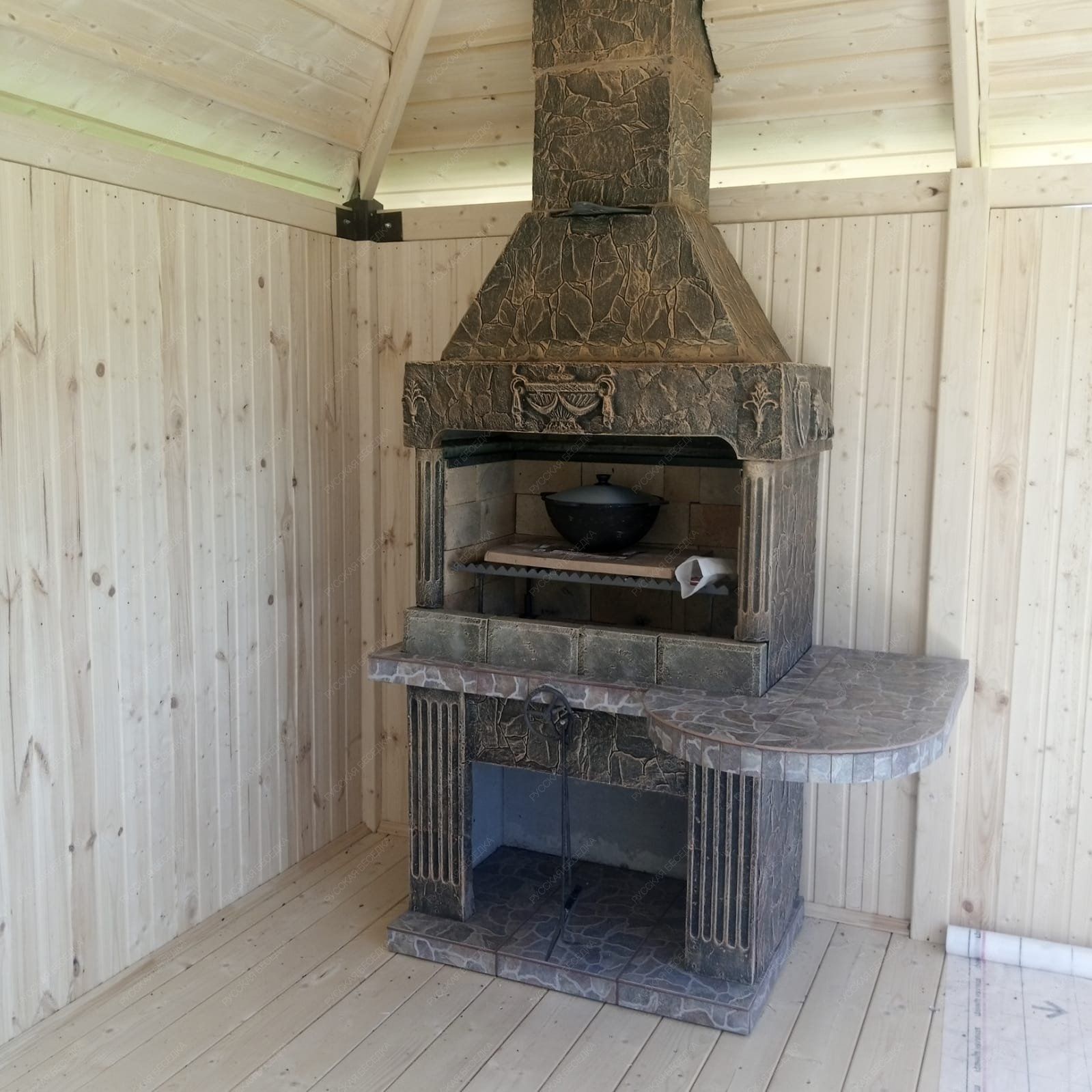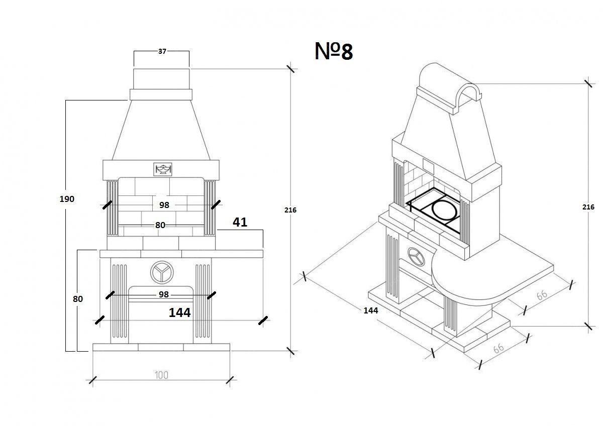 Выбирая барбекю в беседку, рассмотрите такой вариант, как модель №8. Преимущество этой модели в широкой топке, просторной столешнице с практичной рабочей поверхностью (керамическая плитка), а также эффектном дизайне. Последний отсылает нас к греческим, античным мотивам, а потому хорошо впишется в пространство, где сделана ставка на классику.