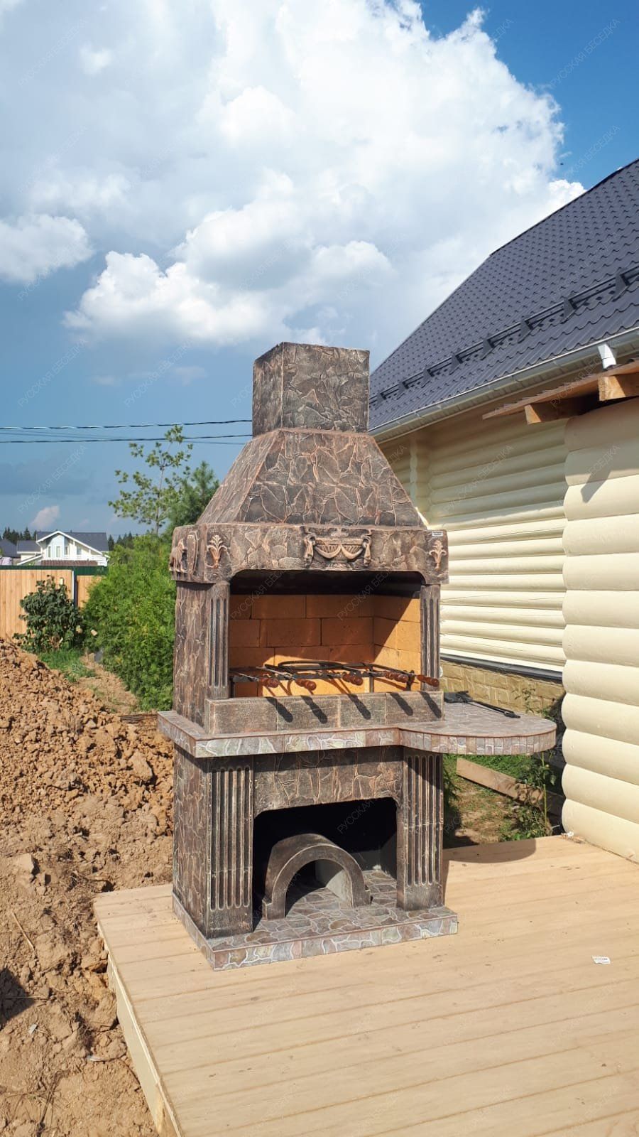 Барбекю-печь сделана из армированного огнеупорного бетона с добавлением керамзита.