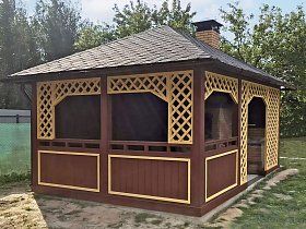 Беседка выполненная из лучших пород древесины, прослужит долгие годы и не потребует особого ухода и обслуживания. Специальные лакокрасочные материалы которые мы используем, предотвратят старение, гниение и заражение грибком конструкции кухни. Используемая огнебиозащита образует полупрозрачное полуматовое покрытие, стойкое к влаге, УФ-излучению, перепадам температуры и другим атмосферным воздействиям.
