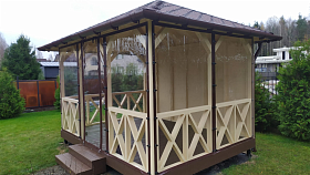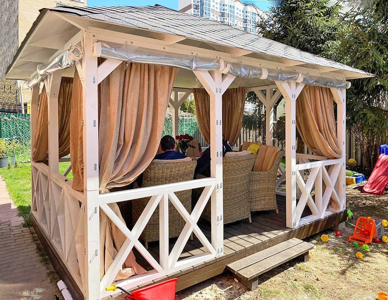 Беседка выполненная из лучших пород древесины, прослужит долгие годы и не потребует особого ухода и обслуживания. Специальные лакокрасочные материалы которые мы используем, предотвратят старение, гниение и заражение грибком конструкции кухни. Используемая огнебиозащита образует полупрозрачное полуматовое покрытие, стойкое к влаге, УФ-излучению, перепадам температуры и другим атмосферным воздействиям.