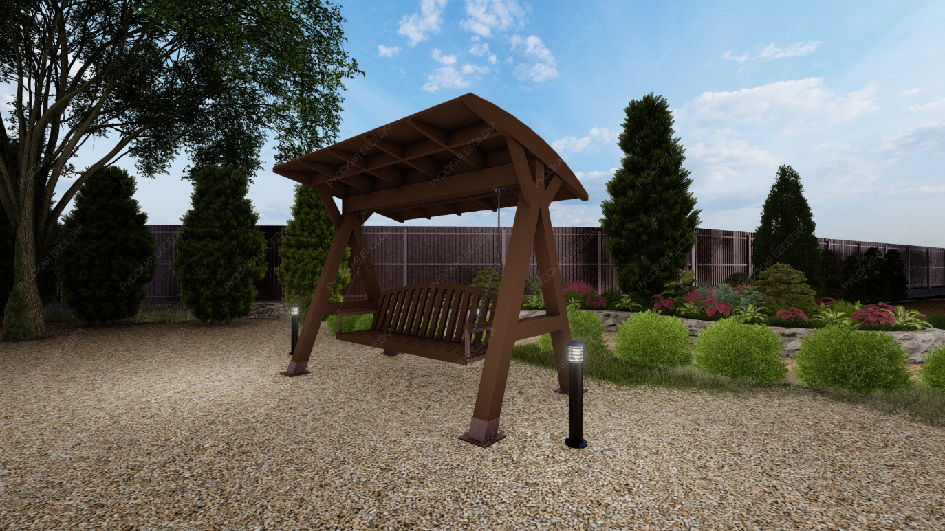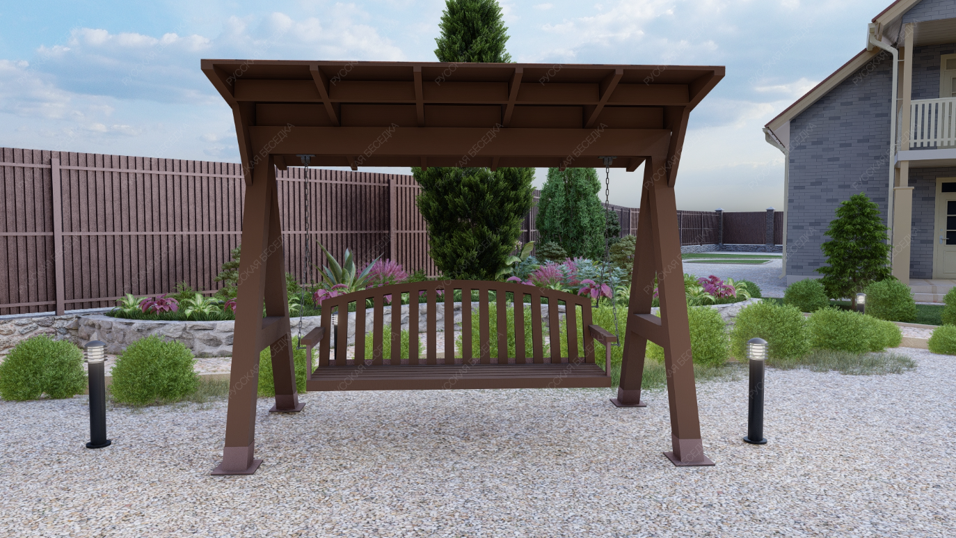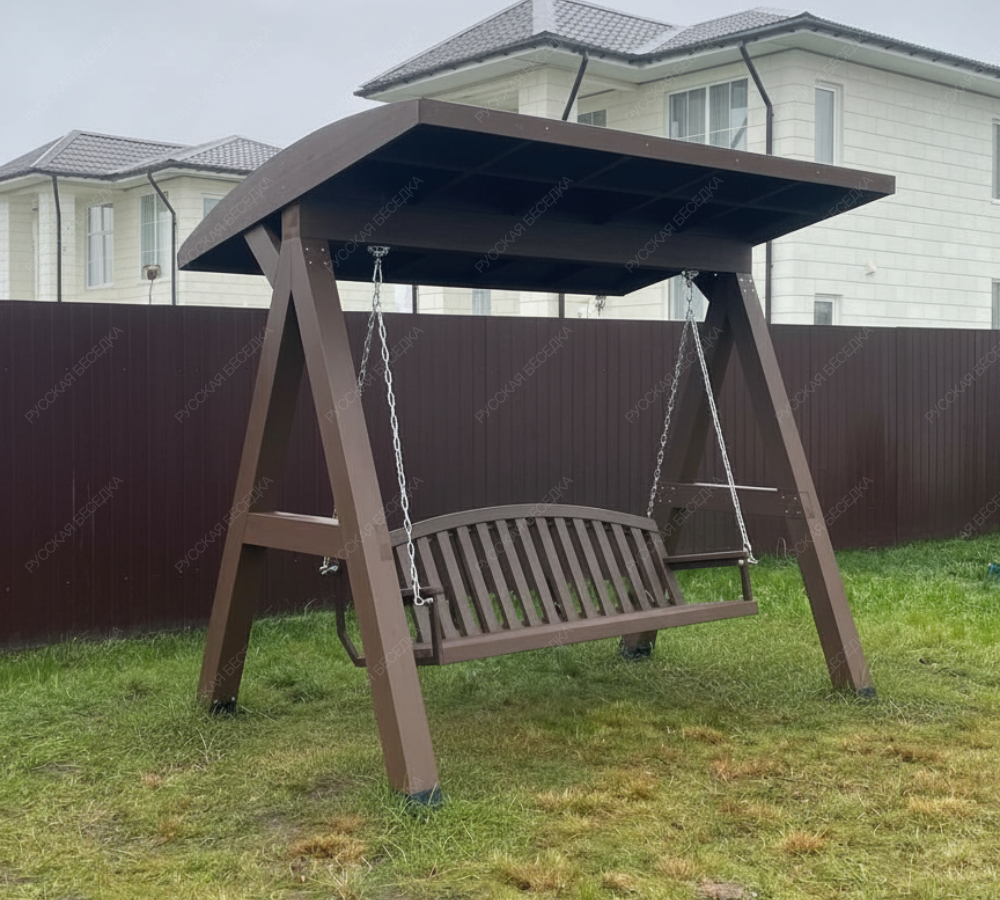 Эти качели идеально вписываются в ландшафт вашего участка, добавляя ему стильный и современный акцент. Они станут любимым местом для всей семьи, где можно провести время в общении и отдыхе.