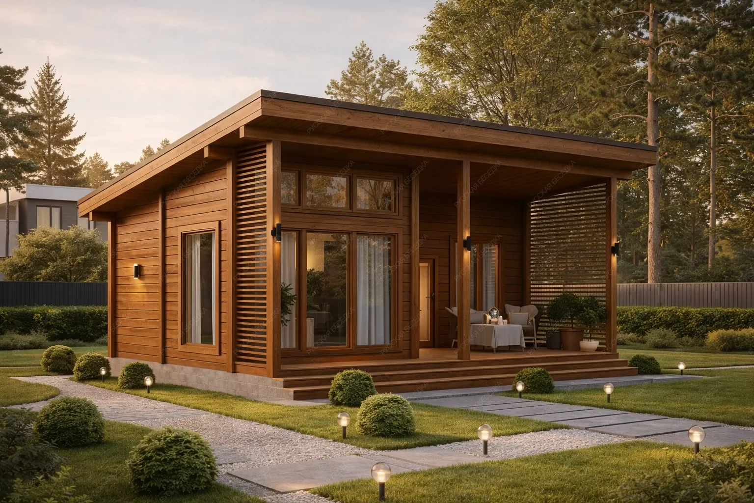 Садовые дома из хвойных пород древесины — это идеальное решение для обустройства загородного участка. Просторные и уютные, они отлично подходят для летнего проживания, выполняя функцию гостевого дома или компактной дачи, где можно с комфортом проводить тёплые месяцы вдали от городской суеты. В основе конструкции — массив сухой строганной доски камерной сушки и клееный брус, прошедшие тщательную обработку. Сорт древесины АВ по лицевой стороне обеспечивает чистую, эстетичную поверхность с благородной текстурой натурального дерева. Хвойные породы (ель и сосна) создают внутри особый микроклимат: воздух наполняется лёгким ароматом смол, а естественная способность древесины дышать поддерживает комфортный уровень влажности даже в жаркие дни. Такие постройки органично вписываются в любой ландшафт, не требуя массивного фундамента и сложного ухода. Внутреннее пространство может быть организовано по собственному усмотрению: от зоны отдыха до компактной спальни или столовой. Это полноценное жилое пространство, где каждая деталь продумана для того, чтобы пребывание на свежем воздухе было максимально комфортным. Капитальность конструкции, обеспеченная качественными материалами, гарантирует долгие годы эксплуатации. Садовый дом становится не просто постройкой, а любимым местом встреч с близкими и уединённого отдыха на лоне природы.