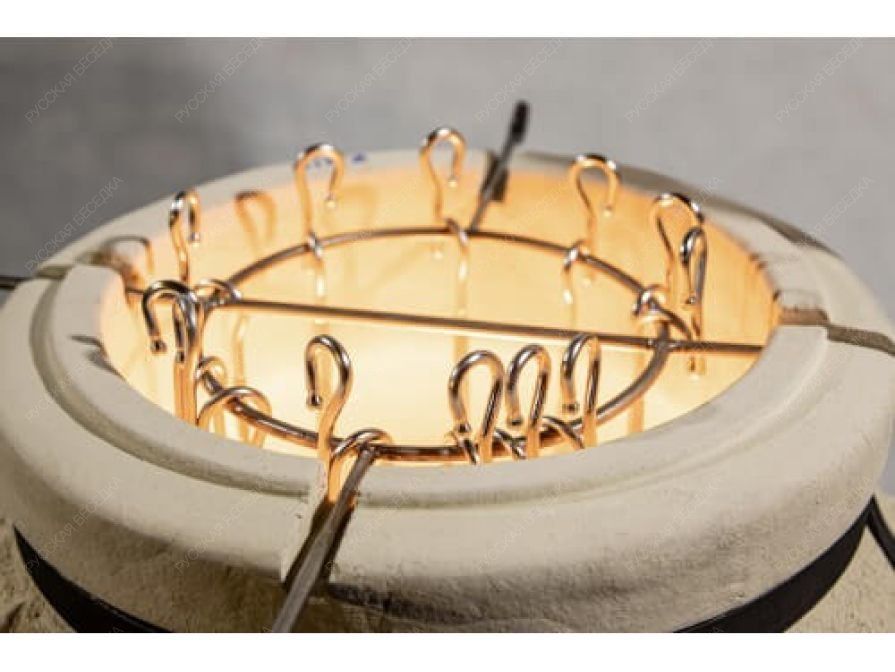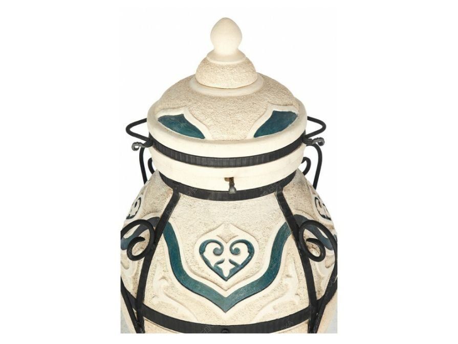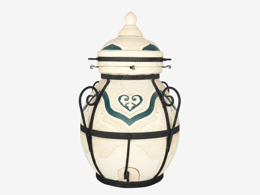 Данный тандыр идеально подходит для большой компании. В комплекте много шампуров, а толщина стенок увеличена для длительного сохранения тепла. Отличительная особенность этой модели — особый цветовой орнамент.