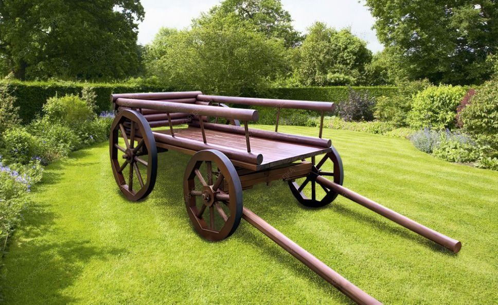 Длинная телега, выполненная из хвойной порода – сосна, замечательно впишется в сад, украсив собой любой выбранный ландшафтный дизайн. Также представленная тележка деревянная может быть частью дизайна экстерьера кафе или ресторана. Такой элемент придаст атмосфере утонченности, тепла и сельского романтизма. Поскольку телега имеет довольно внушительные размеры, будет более правильным разместить ее на большой территории, чтобы она не забирала на себя всё внимание ввиду своих объемов. Рабочая поверхность телеги позволяет разместить на себе цветы, аксессуары или что-то другое. Телега может быть окрашена в любой предпочитаемый цвет.