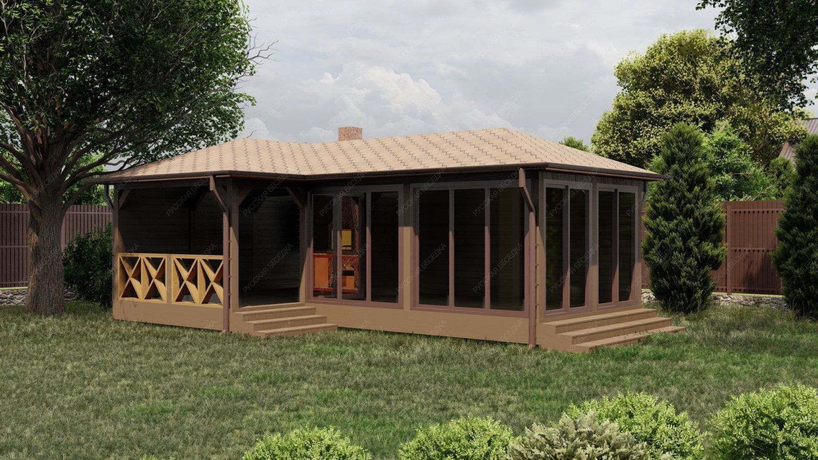 Имитация бруса 16×135 мм внутри, имитация бруса 21×135 мм снаружи.