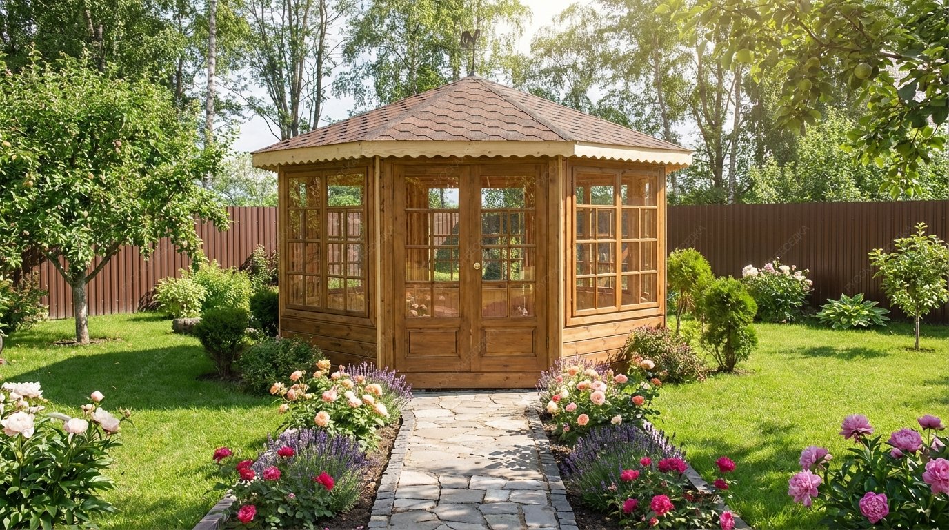 - Форма беседки: восьмигранная