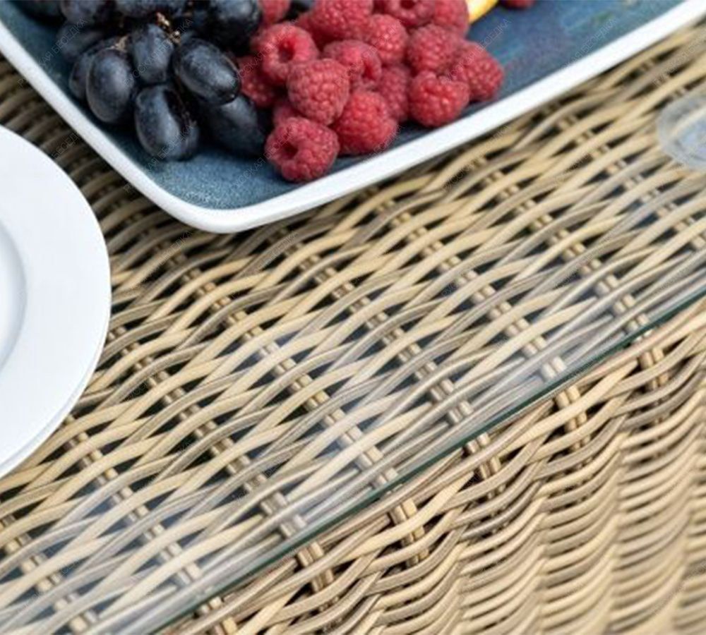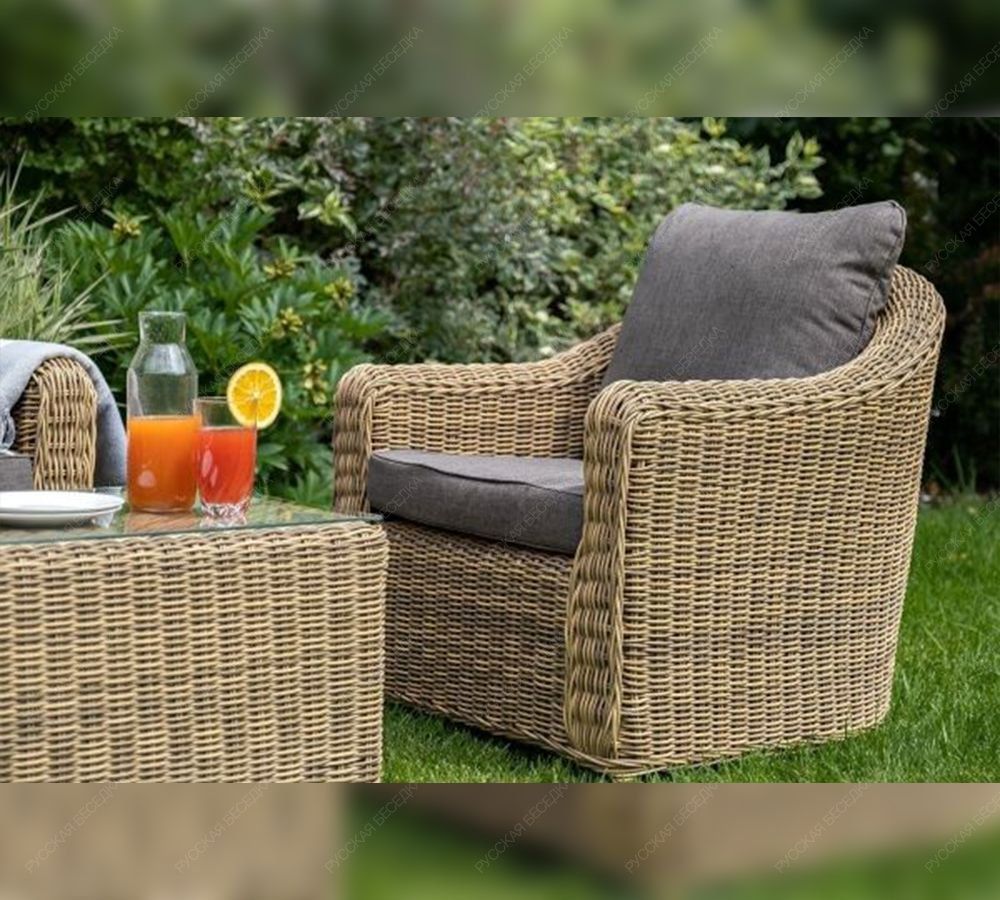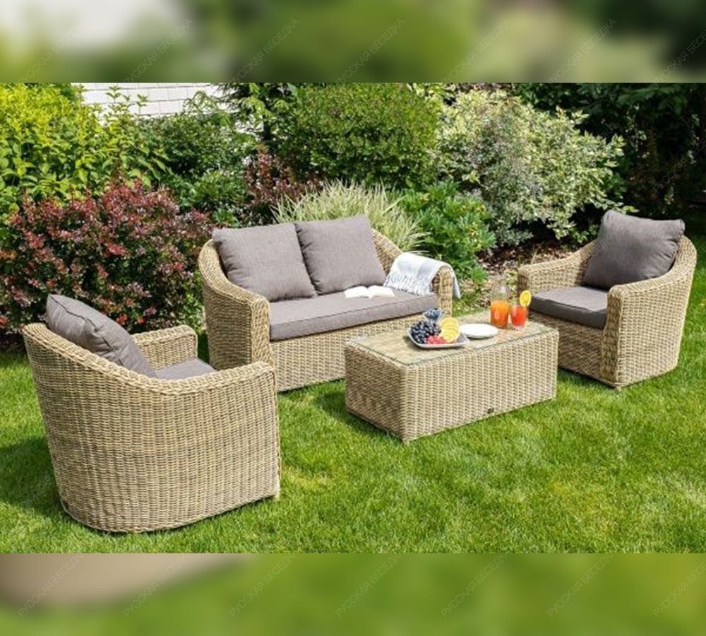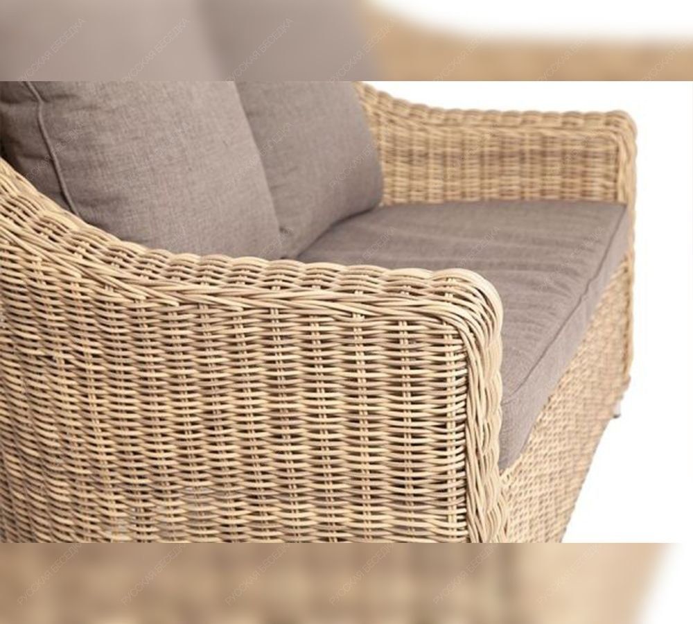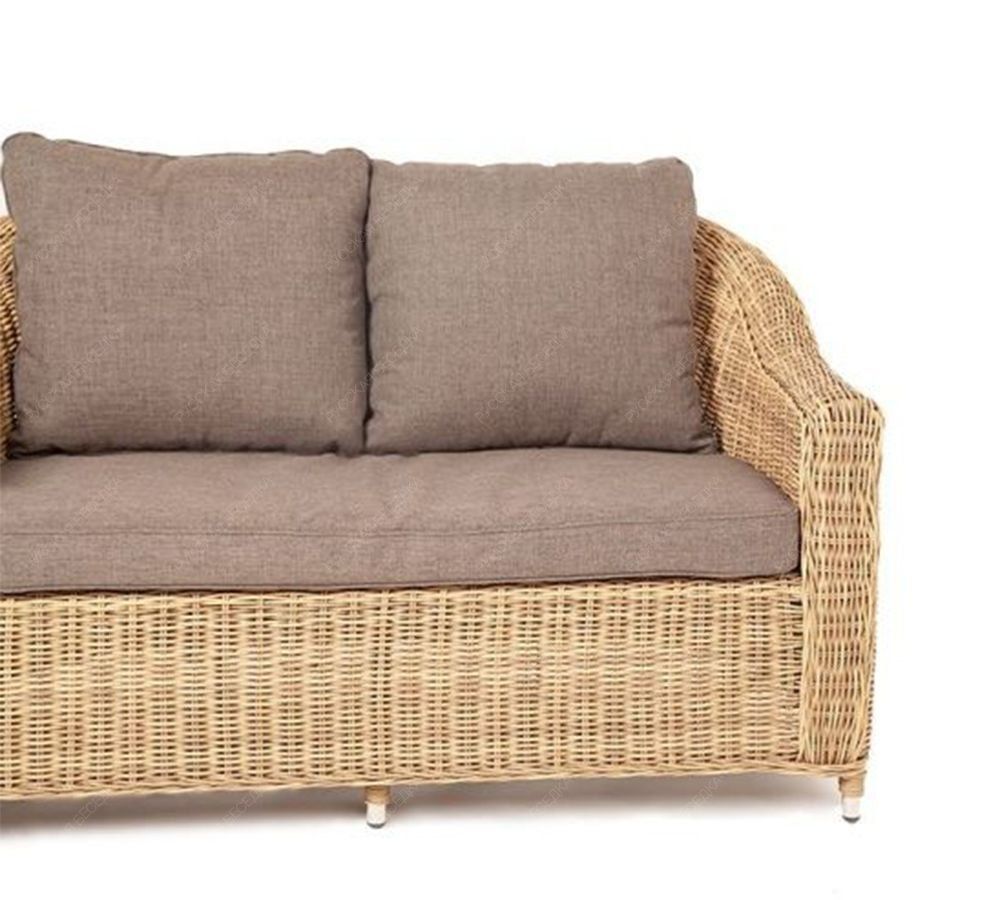 В основе мебели - алюминиевый каркас и круглый искусственный ротанг. Каркас оплетен с помощью ручного метода и представлен в соломенном цвете.